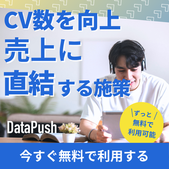 DataPush(データプッシュ)で平均CVR2倍以上の実績。10分で設置完了、即日から効果測定が可能です。まずは無料プランでお試しください。